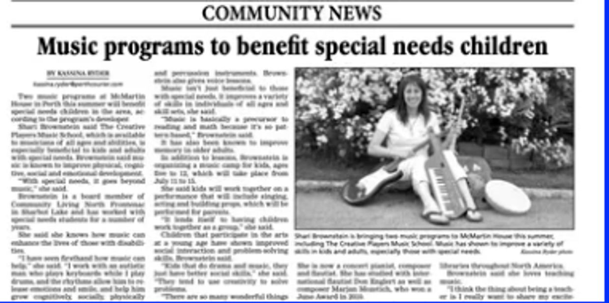 Individual Music Lessons based on needs of student. Shari has had over two decades of experience teaching music to those with special needs.