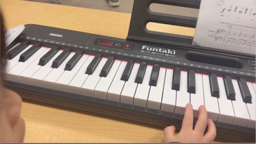 Children learn proper techniques for playing piano using a fun and simple music book. They also get to explore their creativity in composing music on the spot